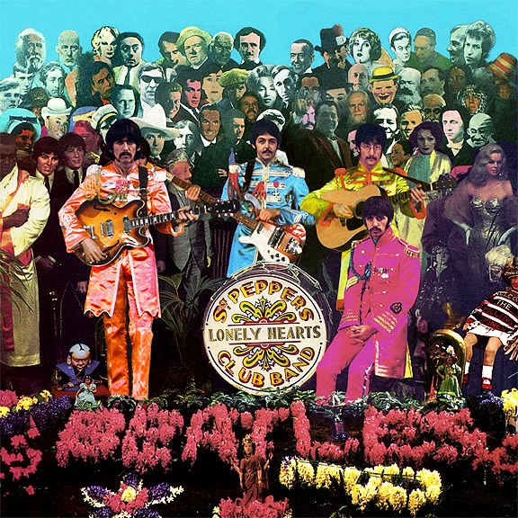 1967: The most famous album cover in history was photographed by Michael Cooper on this day. The Beatles arrive at Chelsea Manor Studios in London dressed in matching satin marching band uniforms and pose amidst an extensive array of wax figures, flowers and cardboard cutouts for the cover of Sgt. Pepper’s Lonely Hearts Club Band.