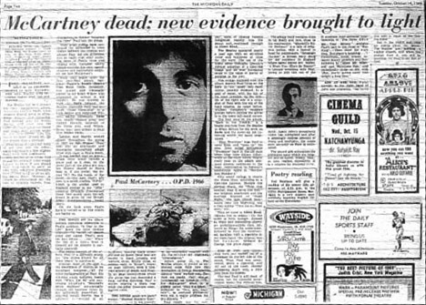 Fred LaBour is asked to write a review of the new Beatles album Abbey Road for the University of Michigan student newspaper. Instead he turns in a piece he clearly thinks no will take seriously, headlined “McCartney Dead: New Evidence Brought to Light.”